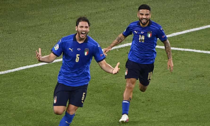 Barella 2 - 0. Berardi 1 - 0. Roberto Mancinis side were on top from the get-go with Giorgio Chiellini scoring relatively early on only for the goal to be disallowed for handball.